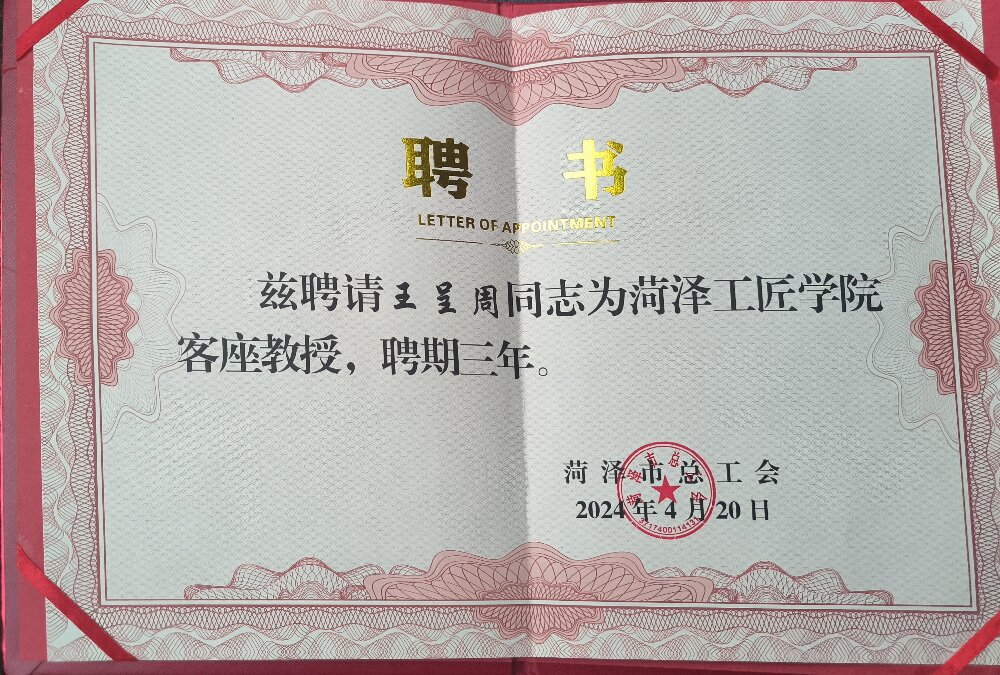 聚祥科技集團——王呈周受聘菏澤工匠學(xué)院客座教授
