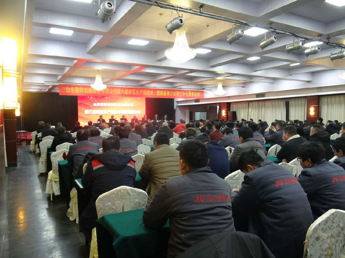 2019年1月8日,山東聚祥機械股份有限公司二十七周年慶典暨第六屆磚瓦生產新技術新裝備推介會在著名的中國麒麟之鄉—巨野縣隆重召開。巨野縣麗天明澤大酒店張燈結彩,喜迎八方來賓。共計400余人參加了此次活動,包括來自全國各地的160多名客戶代表,行業專家及公司全體員工,大家齊聚一堂、共話友誼、共謀發展。