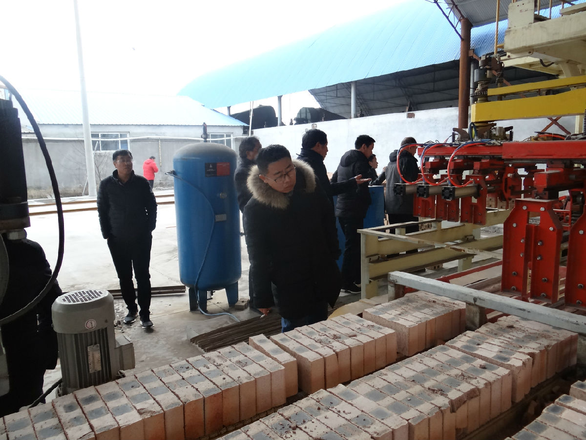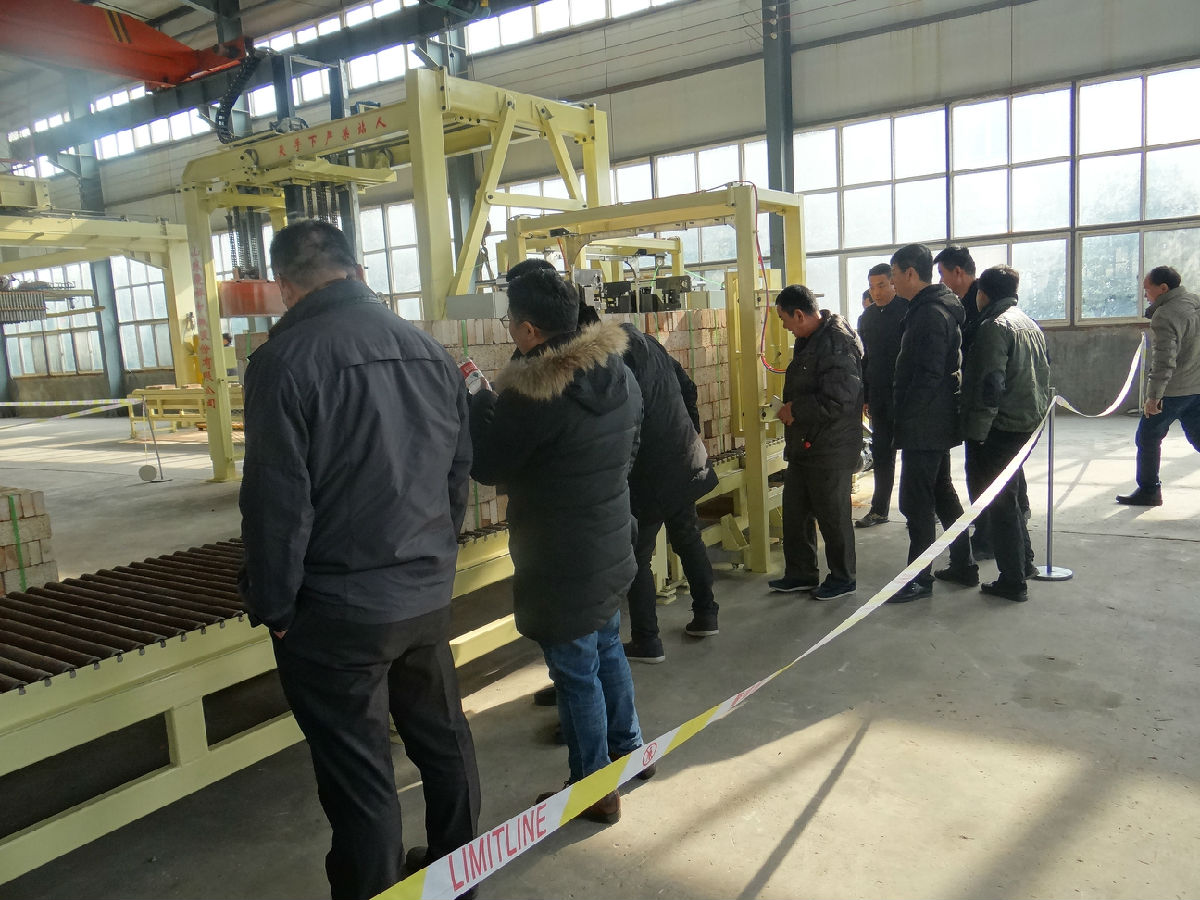 會后,全體客戶參觀了聚祥公司自主設計研發的高產量雙級真空擠出機、無人值守刮板式取料機、全自動雙泥條切條切坯機、半自動卸磚打包機、高速全自動碼坯機、4.8米大跨度多功能雙夾頭全自動碼坯機等自動化裝備,又到濟寧市嘉祥縣、鄒城市參觀了聚祥公司生產的半自動卸磚打包生產線和全自動卸磚打包生產線工作現場。